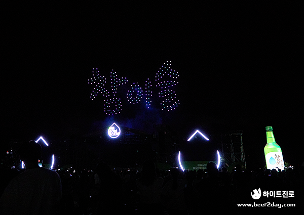 3년 만에 돌아온 이슬라이브 페스티벌의 마지막 대미를 장식하는 300대의 드론 불꽃쇼와 감동의 불꽃놀이! 이슬같이 선명하게 반짝이는 두꺼비와 참이슬, 테라 로고가 자라섬의 늦여름 밤을 화려하게 장식했어요.