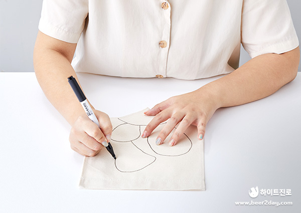 패브릭 마커는 쉽게 지워지지 않기 때문에, 비뚤어지거나 그림을 망칠까 걱정되는 분들은 연필이나 먹지 등을 활용해 먼저 밑그림을 그린 뒤 선을 그려주세요.