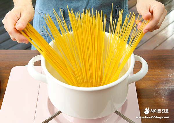 *파스타 삶기 - 파스타 한 줌, 올리브유 1큰술, 소금 1큰술, 물 1리터