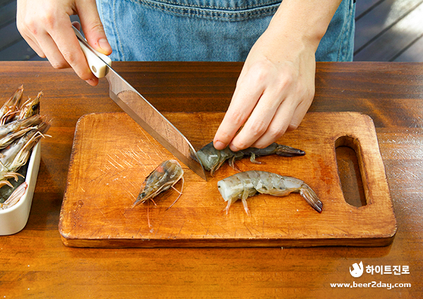 4. 새우는 머리를 제거해 흐르는 물에 씻어주세요.