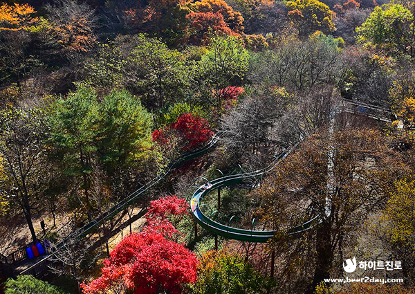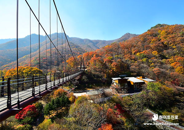 캠핑과 함께 자연휴양림, 산림욕장, 생태숲 등이 조성돼 있어 볼 거리와 즐길 거리가 풍부한 것이 특징입니다. 야영장과 휴양림, 산책로가 연결되어 하늘다리, 하늘슬라이드, 하늘데크 등에서 산책을 즐길 수 있는데요. 때문에 가을이 되면 가을 정취를 만끽하기 위한 이들로 붐비는 곳이라고 합니다.