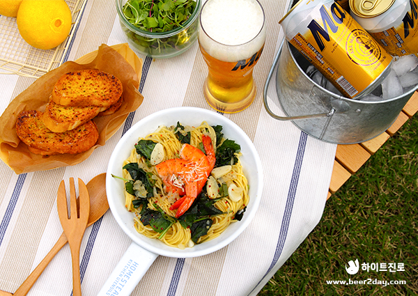 제철 나물과 부드러운 올몰트비어로 완성한 풍미 가득 캠핑 한 상