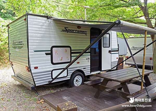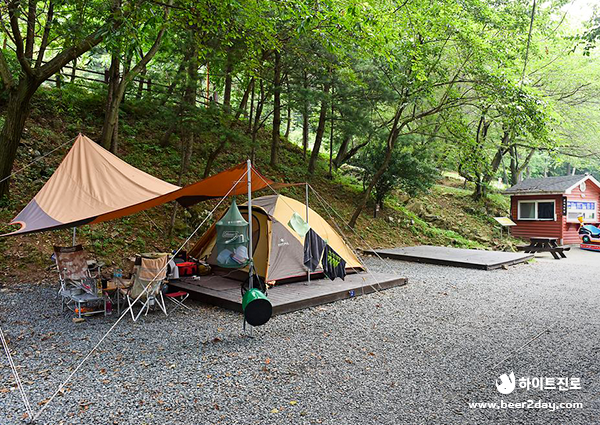 녹음 사이를 거닐며 여유를 만끽할 수 있는 숲 속 캠핑장