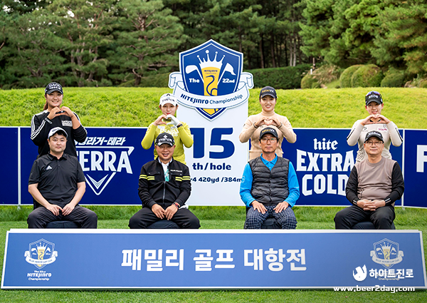 본대회 하루 전 열리는 팬즈데이의 하이라이트는 바로 패밀리 골프 대항전입니다. 항상 선수들의 곁에서 응원해주고 힘이 되어주는 가족과 함께 2인 1조로 팀을 이루어 포섬(Foursome) 방식으로 경쟁하는 게임입니다. 하이트진로 챔피언십에서 우승을 가르는 승부처 코스인 블루헤런스 픽(Blue Heron’s Pick)의 15번~18번홀에서 진행되었습니다.
