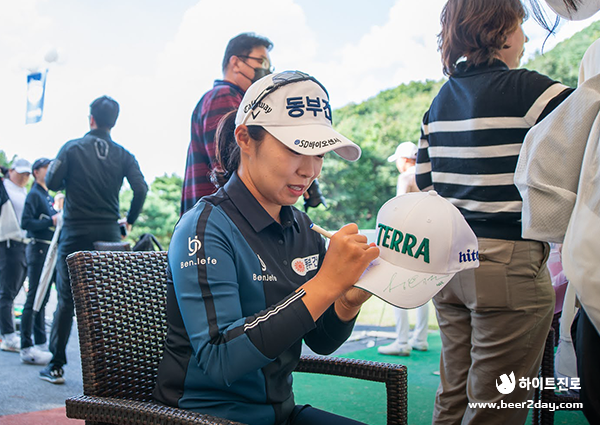 팬즈데이는 선수들 가까이에서 연습 라운드를 구경하는 것은 물론 선수들의 친필 싸인을 받고 사진을 찍을 수 있는 기회를 제공하는데요, 3년 만에 팬과 함께하는 올해의 하이트진로 챔피언십 팬즈데이는 청정한 하늘 아래에서 본 대회를 기다리는 선수와 팬들로 가득 차 기대와 설렘이 고스란히 느껴졌습니다.