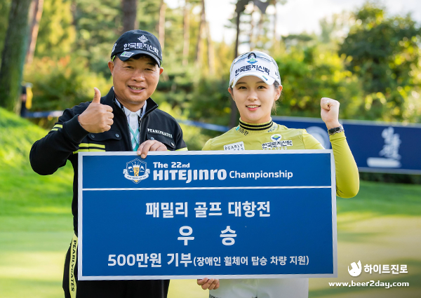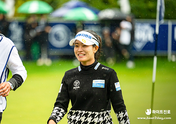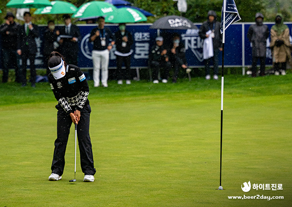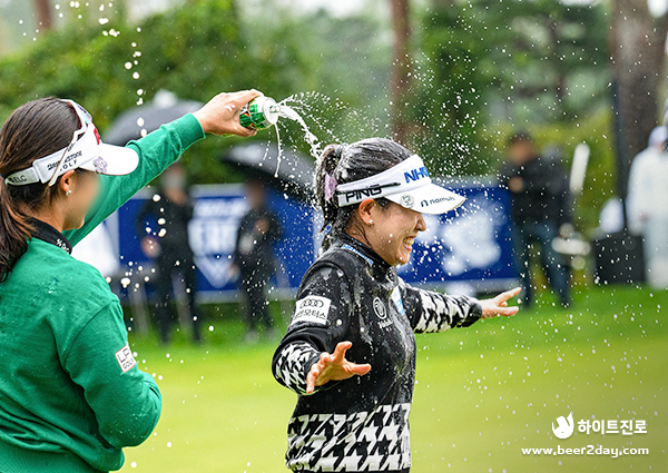 우중혈투 끝에 제22회 하이트진로 챔피언십 메이저 퀸을 차지하게 된 박민지 선수는 마지막 버디 퍼트를 성공함과 동시에 함께한 선수들이 축하하는 맥주 샤워로 우승의 기쁨을 함께 했습니다. 대회 기간동안 계속된 긴장감이 청정한 맥주에 씻겨나가는 듯했습니다.