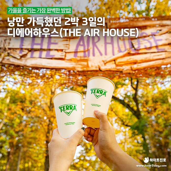 캠핑과 뮤직 페스티벌의 만남! 자연 속에서 펼쳐지는 2박 3일동안의 음악 축제인 디에어하우스가 지난 21일부터 23일까지 남양주 더드림핑 글램핑에서 진행됐습니다. 선선한 가을 바람과 색색의 단풍, 그리고 청정라거 테라와 음악으로 2박 3일을 가득 채웠던 디에어하우스 가을편 현장을 소개합니다!