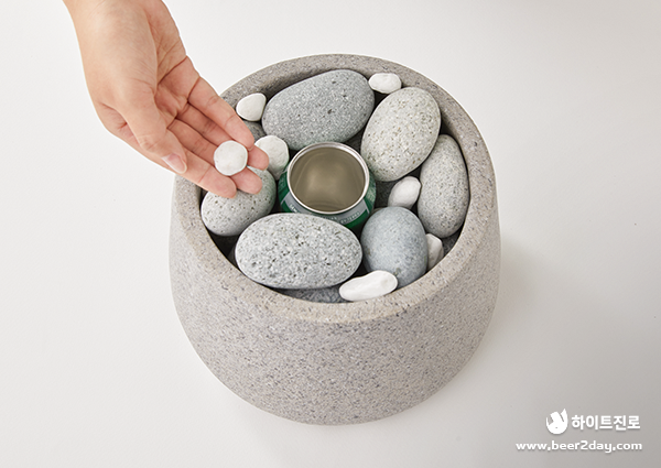 캔의 위치를 정했으면 주변에 돌을 촘촘하게 쌓아 캔이 흔들리지 않게 고정합니다. 비투지기는 큰 자갈 사이에 흰색의 작은 조약돌로 틈을 메꾸면서 포인트를 주었습니다.