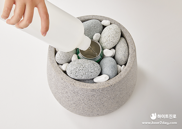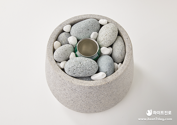 캔의 위치를 정했으면 주변에 돌을 촘촘하게 쌓아 캔이 흔들리지 않게 고정합니다. 비투지기는 큰 자갈 사이에 흰색의 작은 조약돌로 틈을 메꾸면서 포인트를 주었습니다.