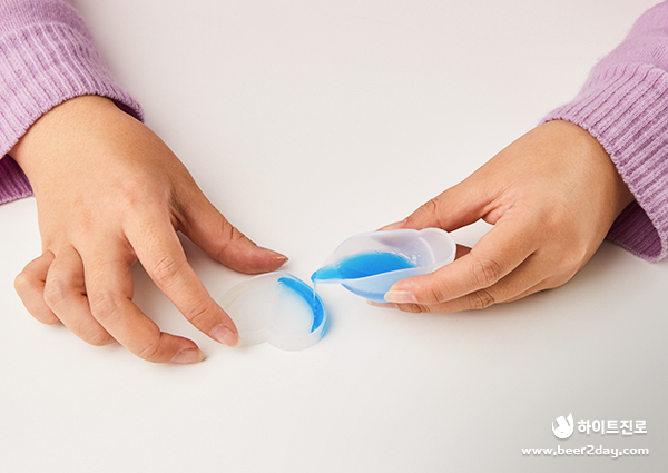 레진 용액의 종류에 따라 UV램프로 경화시키거나 시간을 두며 자연 경화를 시킨 뒤 몰드를 떼어내면 완성!