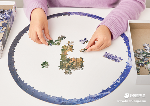 퍼즐…좋아하세요? 비투지기는 직소퍼즐을 정말 좋아하는데요. 평소에도 직소퍼즐을 맞추며 주말을 보내곤 한답니다. 작은 조각들로 하나의 그림을 완성하고 나면 정말 뿌듯하답니다. 이번에는 자주 보던 사각형의 도안이 아닌 행성의 형태 그대로를 맞추는 원형 퍼즐이 있어 구입해 보았습니다.