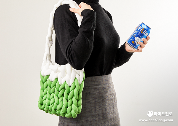 뜨개질이 익숙하지 않은 비투지기는 처음에 코 길이를 일정하게 유지하기, 힘 조절 등이 조금 어려웠지만, 생각보다 빠르게 핸드 니팅에 적응할 수 있었습니다. 처음 가방을 만들 땐 40분 정도 소요되었는데요. 핸드 니팅에 익숙해지면 미니 백 하나를 만드는 데 20~30분 정도 소요된다고 하네요.