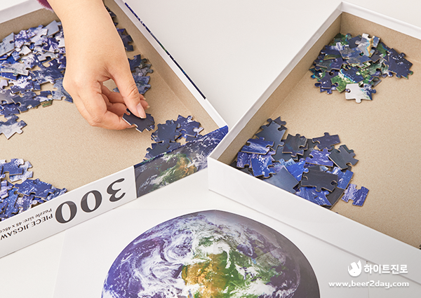 퍼즐…좋아하세요? 비투지기는 직소퍼즐을 정말 좋아하는데요. 평소에도 직소퍼즐을 맞추며 주말을 보내곤 한답니다. 작은 조각들로 하나의 그림을 완성하고 나면 정말 뿌듯하답니다. 이번에는 자주 보던 사각형의 도안이 아닌 행성의 형태 그대로를 맞추는 원형 퍼즐이 있어 구입해 보았습니다.