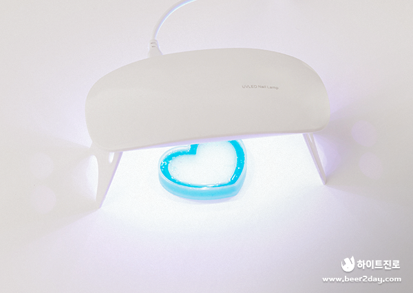 레진 용액의 종류에 따라 UV램프로 경화시키거나 시간을 두며 자연 경화를 시킨 뒤 몰드를 떼어내면 완성!