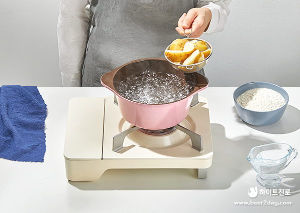 3. 감자가 잠길 정도의 물에 소금을 넣고 2분 정도 데쳐 준비해 주세요.