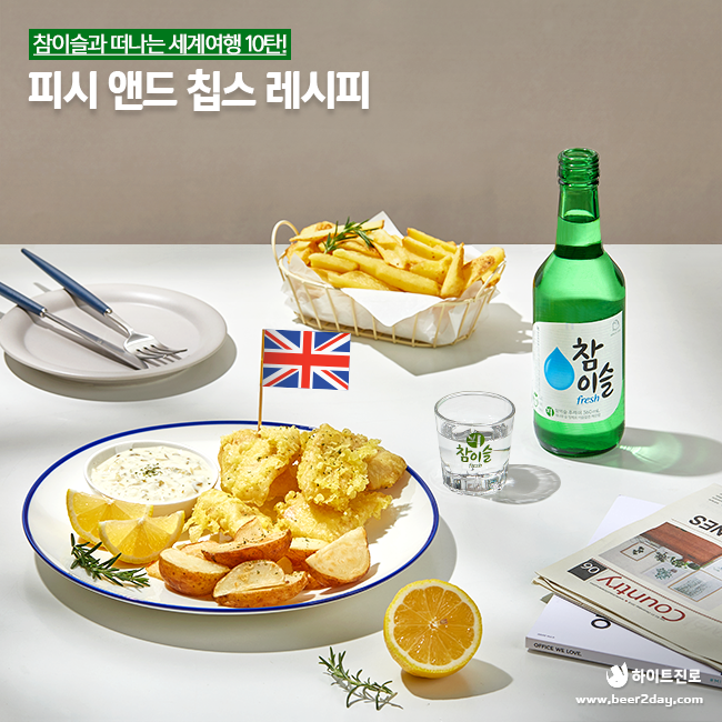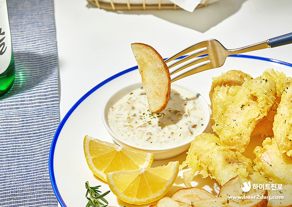 영국의 소울푸드답게 바삭한 튀김옷과 부드러운 생선의 조화 겉바속촉 피시 앤드 칩스 그리고 고소하고 새콤한 타르타르 소스까지! 오늘은 영국의 대표 요리 피시 앤드 칩스로 준비해 보는 건 어떨까요?