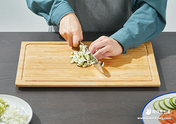 3. 손질하고 남은 애호박, 토마토, 가지, 양파는 굵게 다져줍니다.