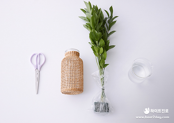 이제 준비된 루스 커스를 화병에 꽂고 충분히 물을 부어주면 완성!