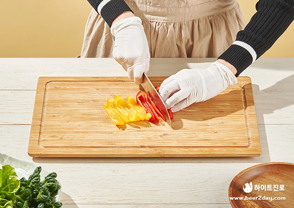 3. 분짜와 함께 곁들여 먹을 양파와 빨강/노랑 파프리카는 채 썰어주세요.
