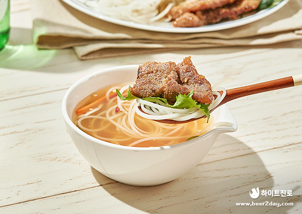오늘도 내일도 깨끗한 한국 대표 소주 참이슬과 베트남 건강식 분짜의 만남! 우리에겐 다소 생소하지만 새콤달콤한 느억맘 소스에 쌀국수와 고기를 찍어 먹는 분짜는 봄 날씨처럼 산뜻한 맛으로 우리의 미각을 행복하게 해주는 음식으로 좋을 거 같습니다. 오늘은 분짜와 함께 산뜻하게 하루를 마무리해 보는 것은 어떨까요?