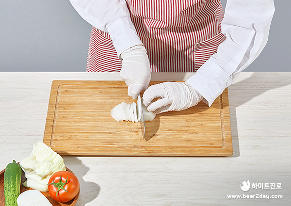 3. 오이, 양파, 양배추, 토마토를 얇게 썰어주세요.