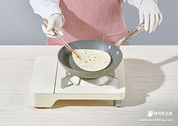 4. 예열한 프라이팬에 난을 앞뒤로 살짝 구워주세요.