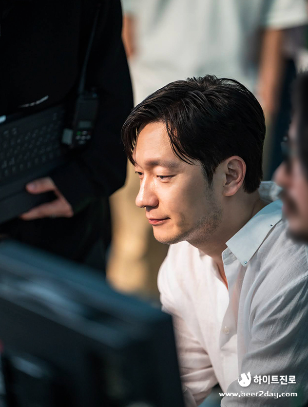 하얀 셔츠를 입은 배우님, 언제 봐도 설레는데요.😍 촬영 방향을 논의하며 모니터링을 하고 계시는 모습입니다.