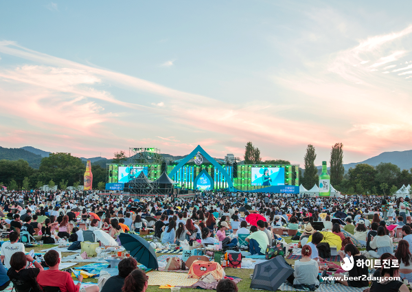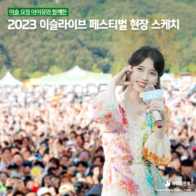 늦더위가 기승을 부리던 9월 초. 청명한 하늘과 드넓은 잔디밭, 멀리 보이는 산맥까지 진한 초록색을 띠던 가평 자라섬에서 세계 유일 소주 뮤직 페스티벌인 <2023 이슬라이브 페스티벌>이 열렸습니다.