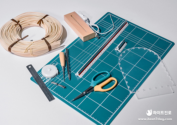 : 라탄 250g (2mm), 아크릴판, 조명, 줄자, 철자, 송곳, 가위, 분무기, 철필