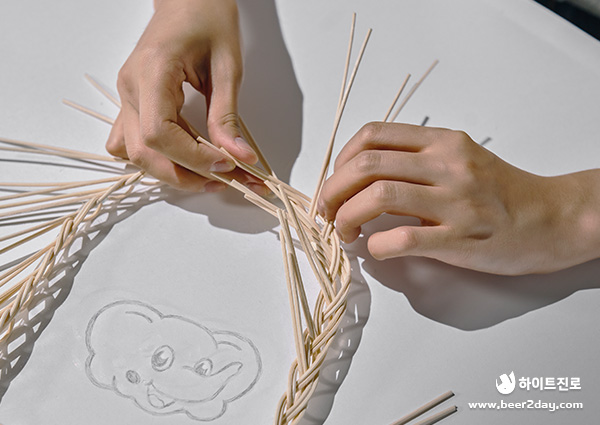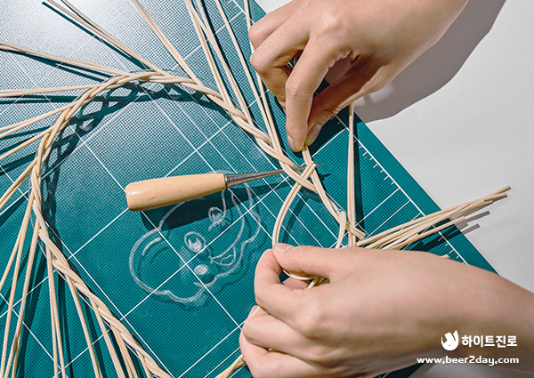 💡Tip! 라탄이 건조해지지 않게 제작하는 중간중간 분무기로 라탄을 살짝 젹셔주세요!