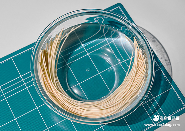 먼저 라탄을 물에 불려 유연하게 만들어주어야 하는데요. ⏰ 5분 정도 담가 두면서 다른 작업을 진행하면 좋아요!