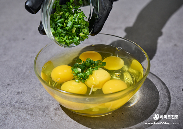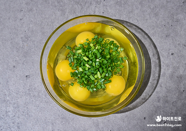 3. 계란을 풀어주고 준비해 두었던 쪽파도 넣어줍니다.