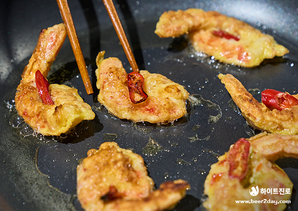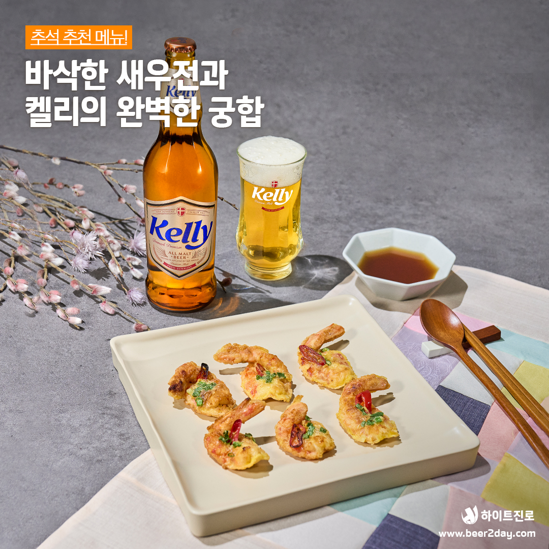 통통하고 바삭한 반전매력의 새우전과 부드러우면서 강렬한 매력을 가진 반전 라거 켈리와의 궁합, 궁금하지 않으신가요?👍