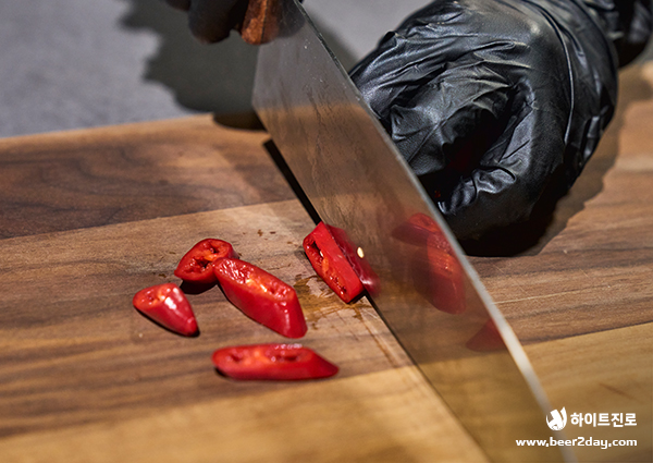 8. 준비해두었던 홍고추도 고명으로 올려줍니다. 🌶️
