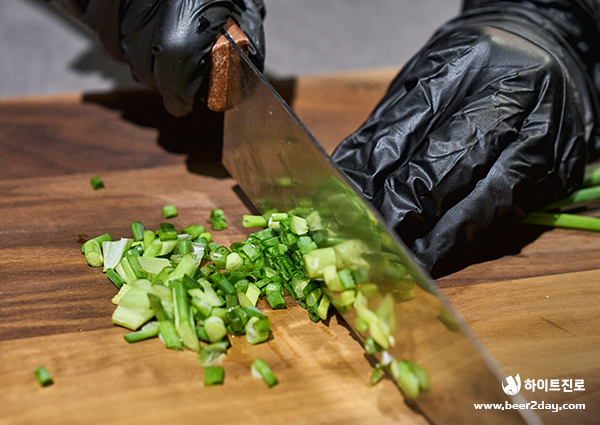 2. 전의 고명이 되어줄 홍고추와 쪽파를 썰어 준비해줍니다.
