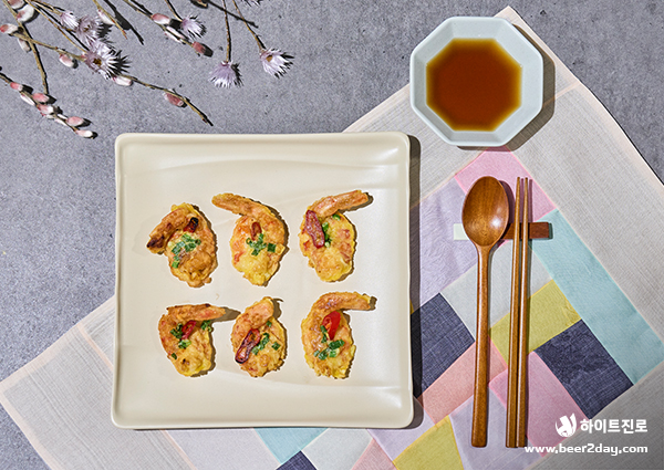 통통하고 바삭한 반전매력의 새우전과 부드러우면서 강렬한 매력을 가진 반전 라거 켈리와의 궁합, 궁금하지 않으신가요?👍