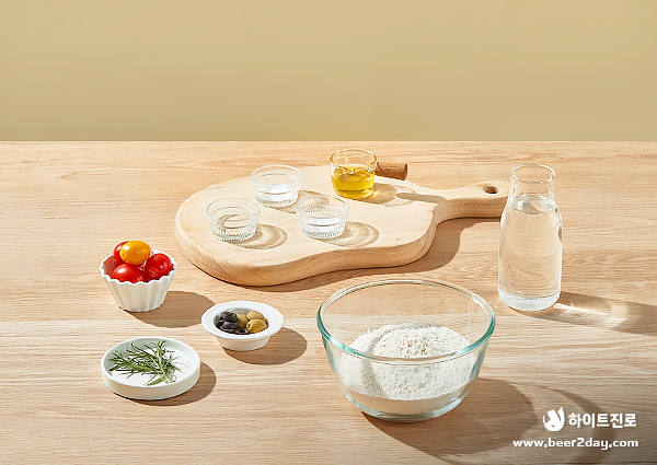 ๊ฐ๋ ฅ๋ถ 300g, ์๊ธ 3g, ์คํ 4g, ๋๋ผ์ด์ด์คํธ 5g, ๋ฏธ์ง๊ทผํ ๋ฌผ 240mL, ์ฌ๋ฆฌ๋ธ์ค์ผ 20mL, ๋ฐฉ์ธํ ๋งํ , ๋ก์ฆ๋ง๋ฆฌ, ์ฌ๋ฆฌ๋ธ