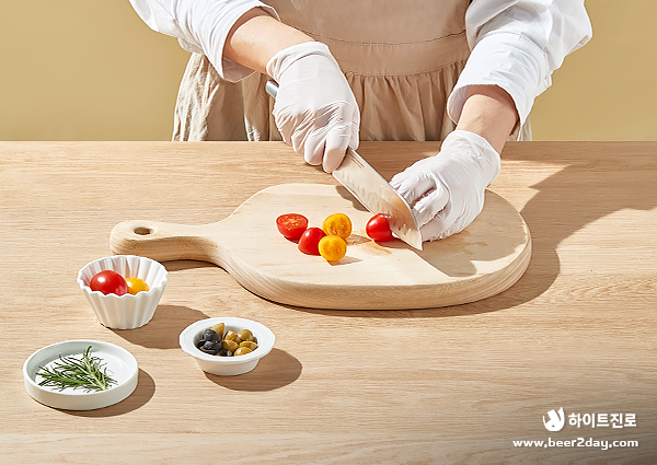 1. ๋ฐฉ์ธํ ๋งํ ์ ์ฌ๋ฆฌ๋ธ๋ ๋ฐ์ผ๋ก ์๋ฅด๊ณ , ๋ก์ฆ๋ง๋ฆฌ๋ ์กฐ๊ธ์ฉ ๋ผ์ด ์ค๋นํด ์ฃผ์ธ์.