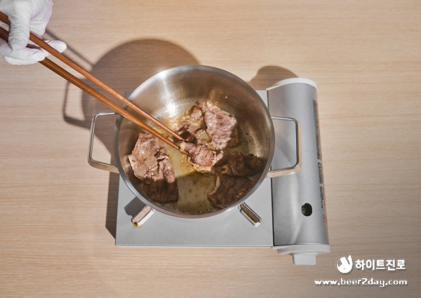 3. 달군 냄비에 차돌박이를 구워줍니다.
