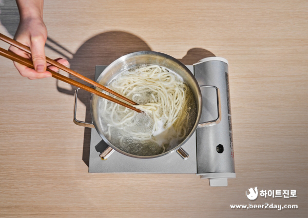 10. 원래 조리 시간보다 1~2분 덜 삶아 건져내주세요.