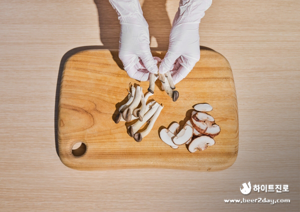 2. 감칠맛을 살리기 위해 버섯도 준비하여 먹기 좋게 손질해 줍니다.