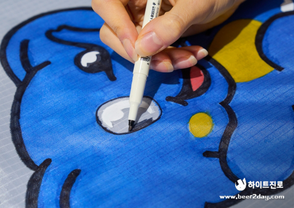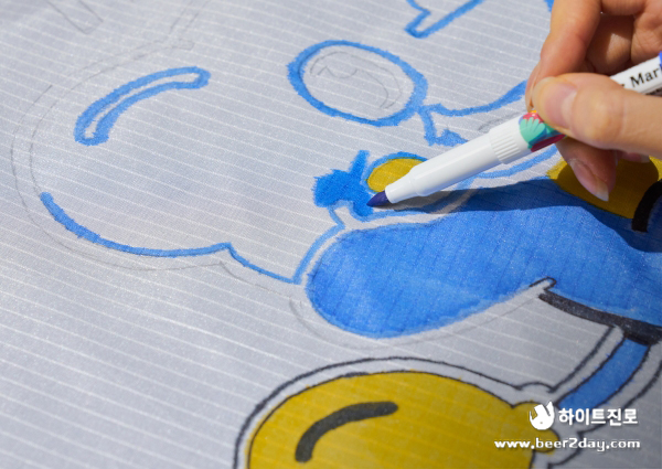 2. 밑그림으로 그린 필리를 패브릭용 사인펜 또는 물감으로 색칠해 주세요.