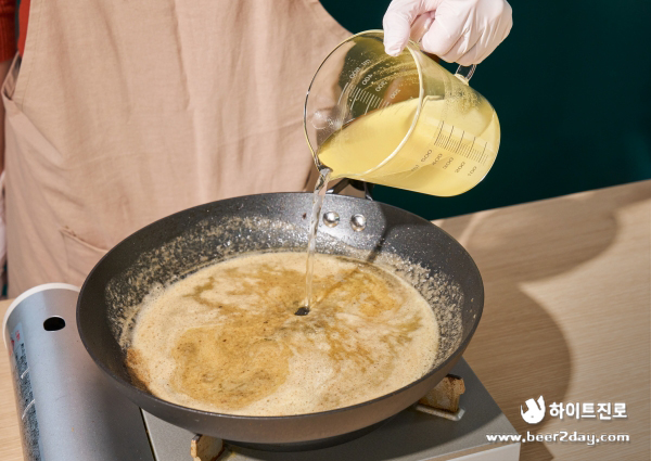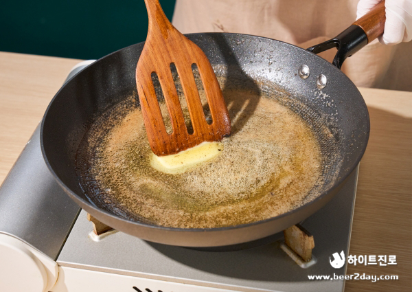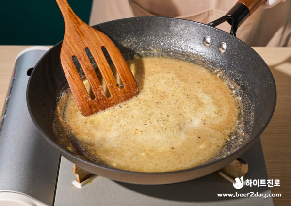 6. 미트볼을 구웠던 팬에 버터를 녹여주세요.