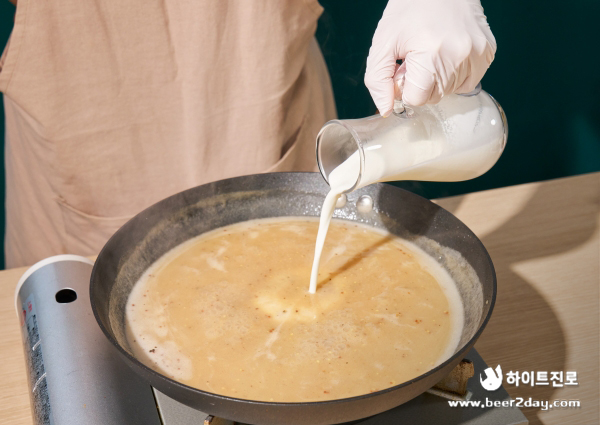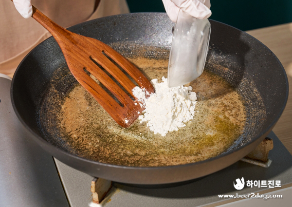 7. 녹인 버터에 밀가루를 섞어 루를 만들어줍니다.