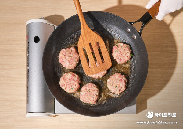 5. 달군 팬에 미트볼을 골고루 구워줍니다.