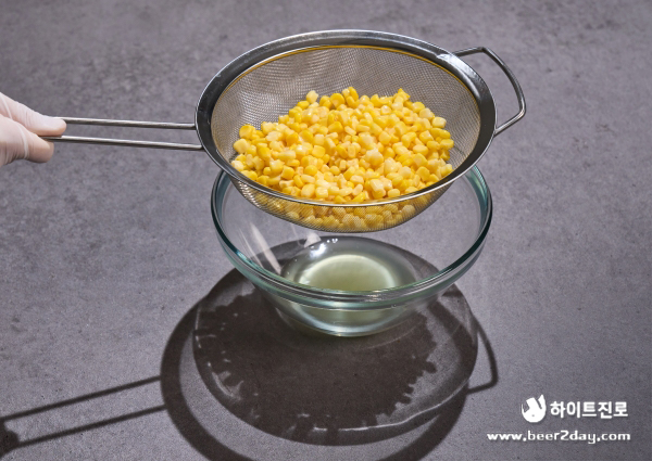 1. 옥수수 통조림은 체에 밭쳐 물기를 제거해 줍니다.