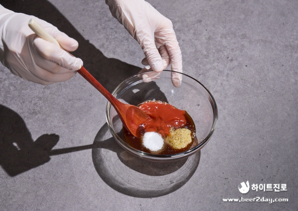 (돈가스 소스 3 큰 술, 케첩 3 큰 술, 설탕 ½ 큰 술, 간 마늘 ½ 큰 술, 후추 조금)