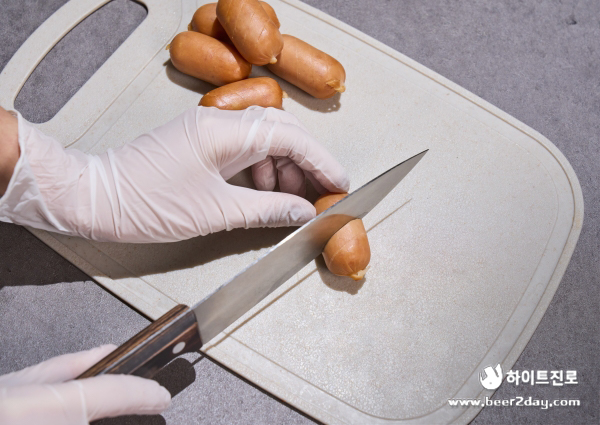 1. 우선 비엔나 소시지에 양념이 잘 배도록 칼집을 내어줍니다.