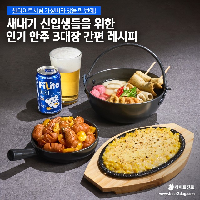 가성비는 물론 맛과 간편함까지 챙긴 인기 안주 3대장 레시피와 찰떡으로 어울리는 시원 상쾌한 필라이트!