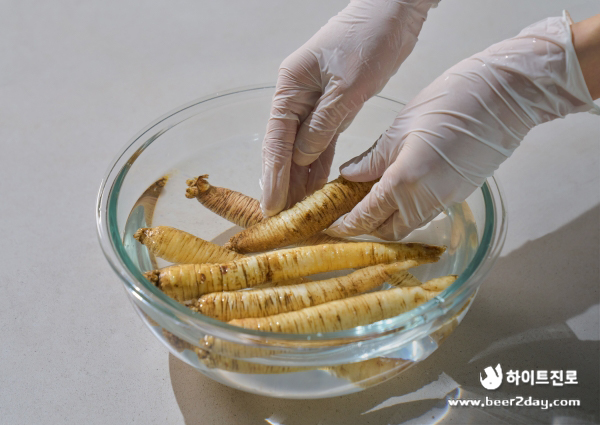 7. 더덕 손질이 완료되었으면 유장 처리를 해줍니다.